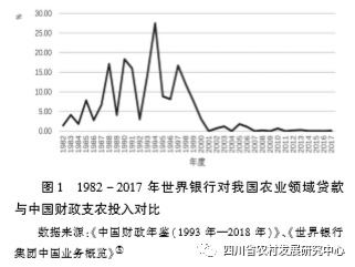 治理主体是贫困治理实践的具体承担者、实施者,决定了贫困治理理念能否得到及时有效的落实。新中国70年的贫困治理是在政府主导下,多元主体参与度逐渐提高的过程。一是设立了跨部门的扶贫机构。中国减贫历史上设立的国务院三西地区农业建设领导小组、国务院贫困地区经济开发领导小组(1993年更名为国务院扶贫开发领导小组)等扶贫机构,都跨越农业、教育、财政等十几个部门,“国务院扶贫开发领导小组”的成员部门数量达到20多个。2015年之后,为了打赢脱 贫攻坚战,扶贫开发领导小组的成员部门超过47个。[10]二是建立了广泛的社会动员机制。为了弥补财政资源的有限性,政府广泛动员社会力量参与贫困治理,如东西协作、中央和国家机关等部门的“定点扶贫”等,鼓励企业、社会组织和公民个人等社会力量参与扶贫。三是在自力更生的基础上,积极吸收国际扶贫资源。从1981年至2002年,我国累计获得国际金融组织贷款620亿美元,国际非政府组织无偿资金2亿多美元。④如1982到2018年间,世界银行对中国农业领域的贷款累 计约900亿元人民币(如图1所示)。为了利用好 国际扶贫资源,1995年2月,国务院扶贫开发领导小组办公室成立外资项目管理中心,之后在全国扶贫任务重的陕西、山西、广西、新疆、甘肃、云南、贵州和四川8个省设立外资扶贫机构,成为我国扶贫资源的有益补充。